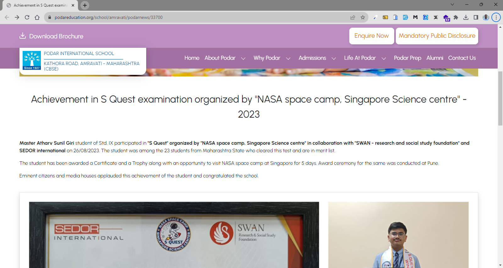 Second round of the contest will be Online. This will be for the selected students from round 1. It will be based on Space Science. This contest will have negative marking for wrong answers. The students will be divided in two (02) groups: Group I: 5th to 7th Group II: 8th to 10th. 95% and above scoring students will go for interview round.